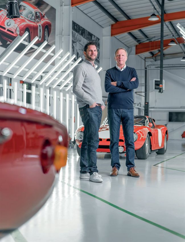 Michael and Ray Mallock stand at the end of the Bizzarrini continuation build line at RML’s base