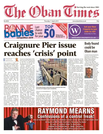 Below is a selection of articles in The Oban Times & Lochaber Times 11/04/2019.
