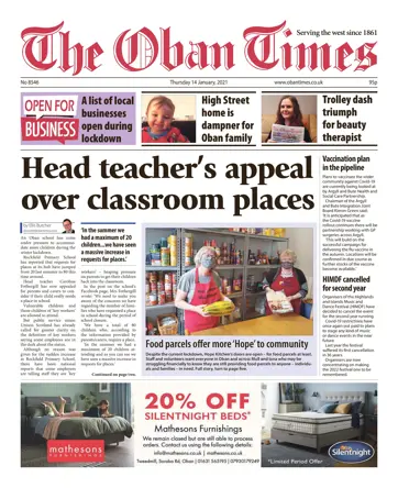 Below is a selection of articles in The Oban Times & Lochaber Times 14th January 2021.