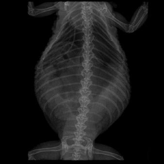 It appears that this female bearded dragon is suffering from hypocalcaemia, with the eggshells – as outlined in the oviducts running down the sides of her swollen abdomen – not being properly mineralised. They would otherwise be more clearly defined in this X-ray.