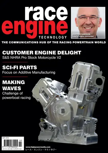 Highlights in this issue include the third part of Jack Kane's Reno V12 Turbo project and a conversation with IndyCar's Darren Sansum. The challenge of Powerboat Racing and a dossier on the S&S Cycle VPS160 NHRA Pro Stock motorcycle v12. Insights into battery testing and microwave telemetry, the development of the HR35 TT Ridgeline Baja Truck. As well as focus articles covering additive manufacturing and fasteners.