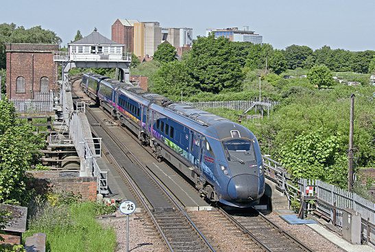 Hull Trains has been running open access services on the East Coast Main Line since September 2000. It has a fleet of five five-car Class 802 bi-mode sets. No. 802303 is pictured crossing the swing bridge at Selby on May 24 with the 15.08 Hull-Kings Cross. See also the photo of this bridge in 1967 on page 37.