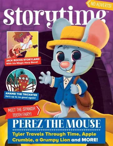 In Storytime Issue 51, meet Spain’s intrepid tooth fairy, Perez the Mouse, go on an apple crumble adventure, travel through time with Tyler, rock out with Jack and the Beanstalk’s band, outsmart Anansi the Spider, gallop up a glass hill, face a grumpy lion and get in a spin!