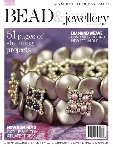 Our special spring issue is packed with 51 pages of all-new projects! Try new things with our features on the Diamond Weave technique, mix macrame and Superduos with Dorothy Wood's project, make a tiara with polymer clay, wire and beads or try your hand with the new Chilli beads. As always, editor Katie Dean provides her expert guidance. We hope you'll create something you love out of our stunning magazine.