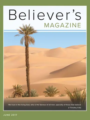 The pictorial theme in the June issue of Believer's Magazine is the beauty of desert scenes. One view of the Christian's life is that it mirrors the experience of Israel in that nation's wilderness journey from Egypt to Canaan. Heavenly food was their blessing, and the Christian also needs refreshment from above for the soul.