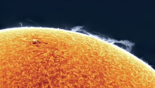 Clouds of hydrogen gas give way as the magnetic field lines of the sun snap and clash together. This display of nature creates astonishing features, known as prominences, on the limb of the sun.