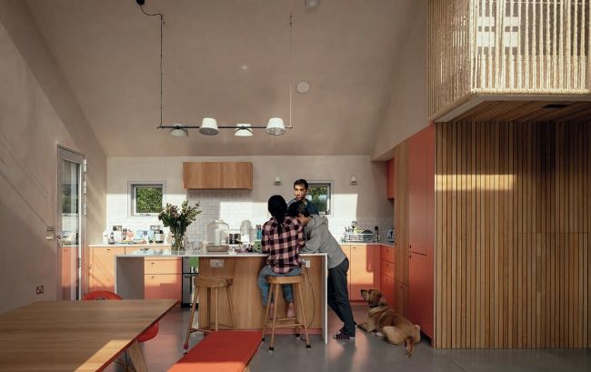 The internal walls and ceiling of this new build home by Pad Studio are handwashed in a natural Clayworks plaster. Adding to the home’s natural spec is the handwoven sisal rope that forms the landing’s bespoke balustrade