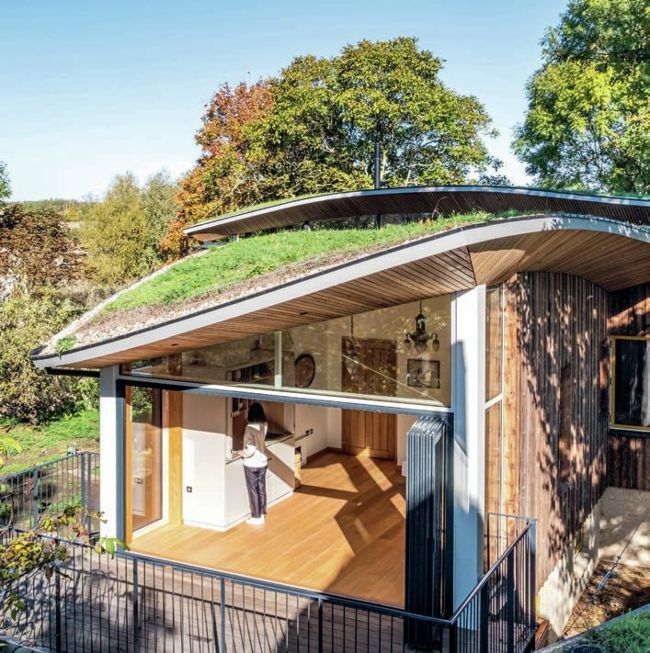 The curved roof of this eco home in Suffolk adds plenty of wow factor, topped with a green roof that is designed to blend in with its surroundings by looking like rolling meadows. The design was a collaboration between MAP Architecture (