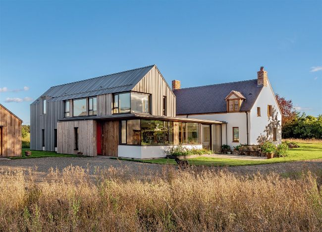 This sympathetic build by Lowfield Timber Frames is connected to a grade IIlisted cottage and features 120mm of factory-fitted PIR insulation