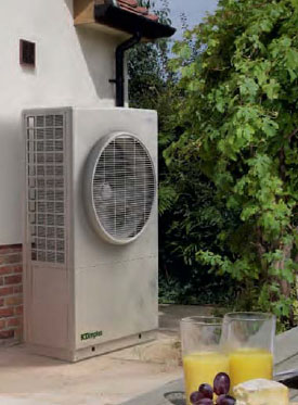 ASHPs work by harnessing the warmth from the air and channeling it into domestic hot water and heating – this unit is a Dimplex A-Class