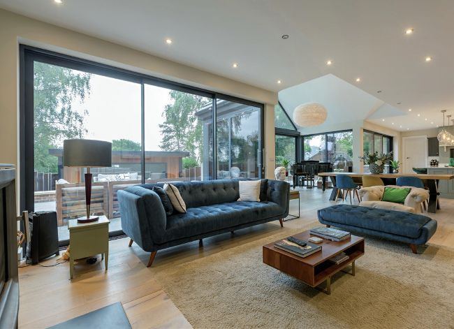 This contemporary extension features theEDGE2.0 sliding doors from IDSystems across the entire elevation, delivering a stunning connection between inside and out