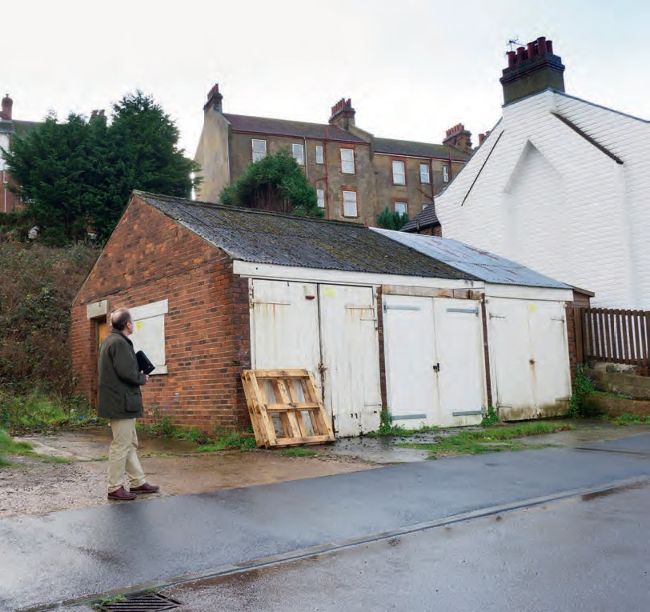 The site currently has three lock-up garages on it and is situated between a pair of semidetached houses on one side and a terrace of attractive Victorian properties on the other. It’s a quiet residential no-through road; opposite the plot is undeveloped woodland that slopes down to a railway station about 80m away.