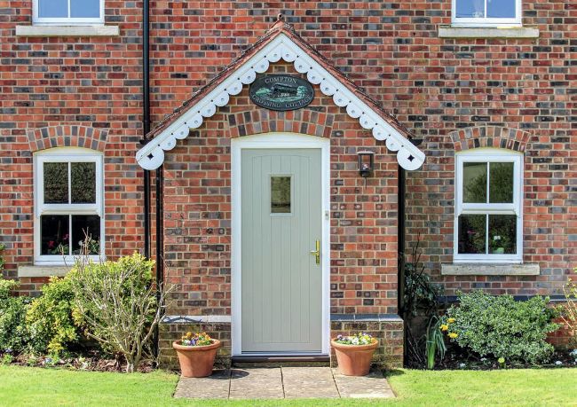 The porch and traditional sage green front door from Thames Valley Windows (www.