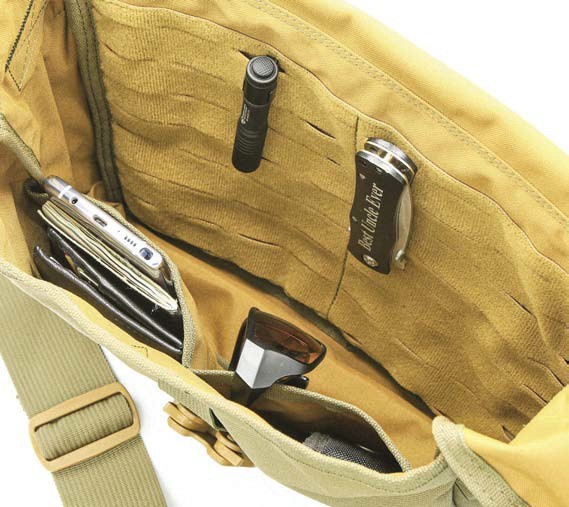 The Shackleton EDC Satchel’s PALS loop panel inside allows modular organization using MOLLE, hook-andloop or even belt clip-equipped pouches and tools. The satchel also has two interior pockets on the front panel for additional organization.