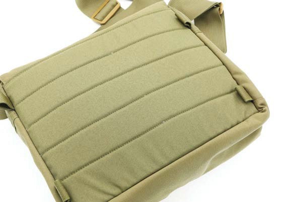 The back of the Shackleton EDC Satchel has 1/8-inch-thick padding for comfort and a more rigid frame. This is important when contents have hard corners and can rub against your ribs. The 1-inch webbing loops allow the satchel to piggyback on a pack or give you a spot to clip your keys to