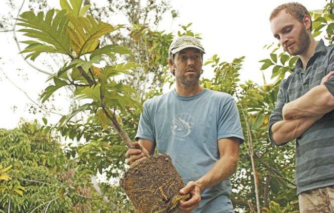 Assuring food for the future: A banana tree is being planted in Hawaii. Photo courtesy of Steve Sakala