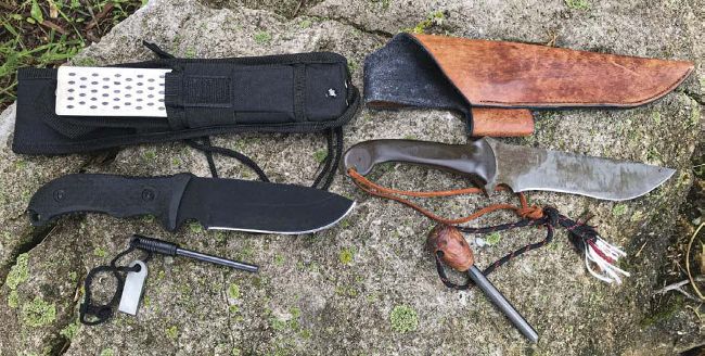 The author’s Schrade SCHF36 Frontier (left) and custom knife ( right). Both serve many purposes when any needs arise.