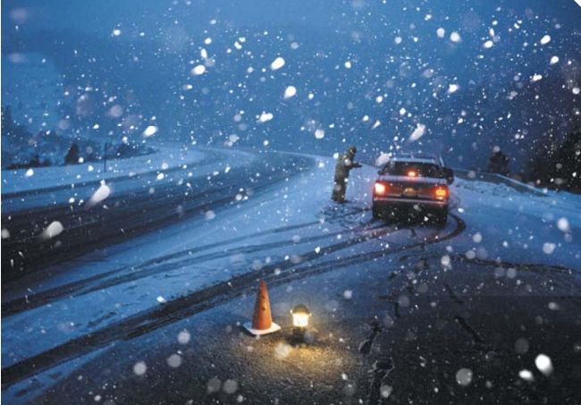 If you’re stranded on a roadway during a snowstorm, keep your hazard lights running while you can to improve your chances of getting help and avoiding accident
