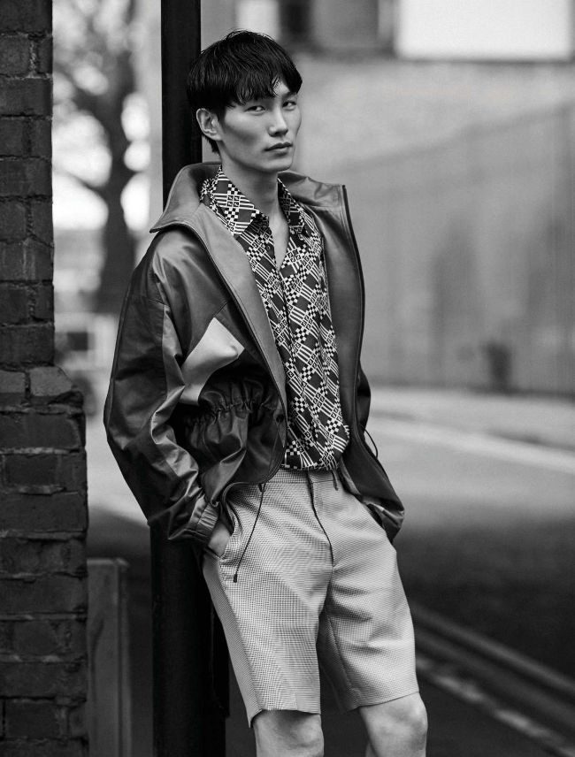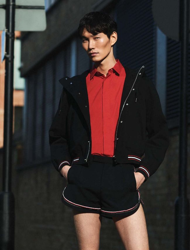 Wonil wears jacket, shirt and shorts, all by Dior Homme