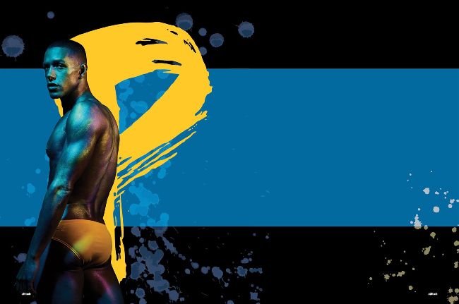 Michael wears trunks, by Speedo