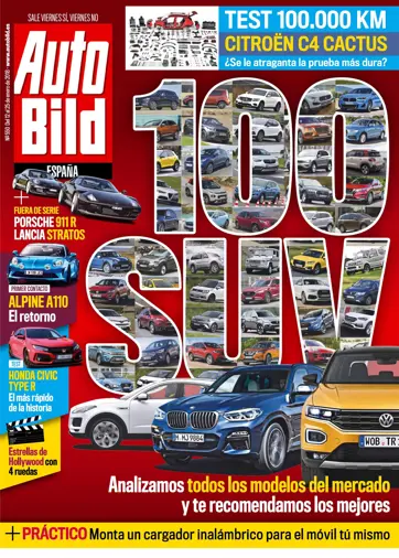 550 La revista AUTO BILD empieza muy fuerte 2018 y en su portada nos trae un especial con los 100 SUV que hay disponibles en el mercado. Si estás pensando en comprar uno, aquí los tienes todos. Además, destacan las principales características, te recomiendan la versión más acertada y si merece la pena o no optar por la tracción 4x4. Por supuesto, no se conforman con eso. También podrás leer las interesantes conclusiones a las que llegan después de que el Citroën C4 Cactus pase por la exigente prueba de 100.000 km. Sin olvidar, por supuesto las pruebas: - Audi RS 4 - Alpine A110 - Subaru XV - Citroën C-Elysée GLP - Mercedes GLA - Honda Civic Type R A esto se suman dos interesantes enfrentamientos cara a cara. Por un lado, el Alfa Stelvio contra el Audi Q5 y, por otro, el exclusivo Porsche 911 R contra el todavía más exclusivo y único New Stratos. Tampoco puedes pasar por alto el reportaje sobre los coches que aparecen en las películas de Hollywood o el práctico sobre cómo montar tu propio cargador inalámbrico en el coche.