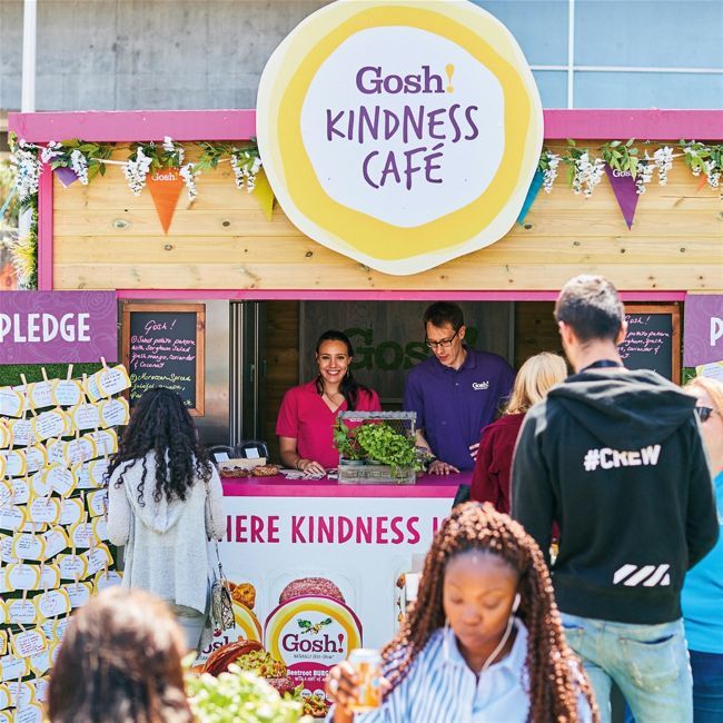 Think there’s no such thing a free meal? Provided you’re willing to show kindness and compassion to others, there is now. Plant-based food brand, Gosh! launched their Kindness Café last year and, due to the roaring success, it’s returned for 2019, appearing in numerous places up and down the country. All you have to do is pledge an act of kindness and a nutritious lunch is yours. Rachel Moule from Action PR, and the brains behind the project, tells us more.