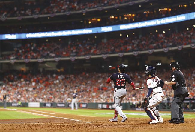 Soto launches a solo home run in Game 6 of the 2019 World Series.