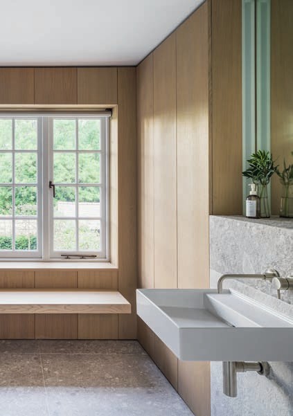 A tidy, clutter-free environment is vital for setting the right mood. There’s little point in investing in high-quality surfaces and finishes if they are just hidden away beneath toiletries. Self builders have the advantage here, as it’s possible to create space for builtin bathroom storage right from the initial planning stages. In this project by Gregory Phillips Architects, floorto-ceiling handleless units establish a sleek, minimal look while keeping things clean. (www.gregoryphillips.com)
