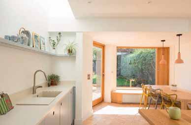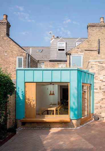 This striking rear extension in Cambridge has given a family home extra space to accommodate for their busy lifestyle. Butcher Bayley Architects have created a bold form with bespoke copper cladding, inspired by other local buildings’ roofs and facade coverings of the same material. The mid-terrace house sits in a conservation area, so extensive planning was required. They’ve created an extension with a unique shape to contrast and complement the classic Victorian home. The cool green copper cladding against warm, timber framed fenestration makes for a distinctive feature.