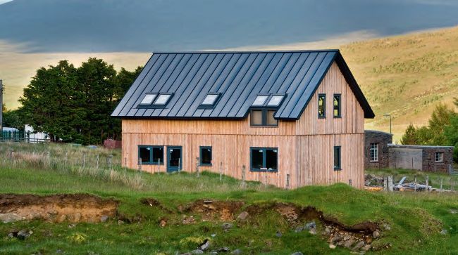 The Colorcoat Urban roofing system on this house in Scotland brings architectural appeal and an aesthetic that blends the property into its surroundings – and works well with the structural insulated panel (SIPs) roofing system. Find out more about SIPs on page 84