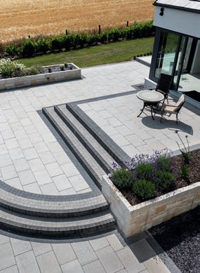 These granite aggregate flags and setts from Tobermore (www. tobermore.co.uk) create a hard-wearing outdoor surface that mimics the look of natural granite. The Mayfair flag range comes in three colours, and the Sienna setts in two, so that you can mix and match them for an eye-catching finish.