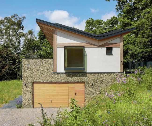 Reducing the embodied carbon of this build was a priority for the homeowner, a climate scientist who briefed Adam Knibb Architects to design a sustainable three-bedroom family home on this green belt site in Surrey. The striking contemporary design has been carefully crafted to sit sympathetically in its environment, causing minimal visual impact to the landscape. The unique cross-laminated timber (CLT) butterfly roof frames the home’s outlook.