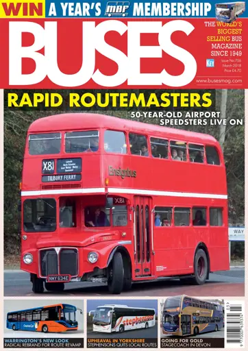 March 2018 RAPID ROUTEMASTERS 50-YEAR-OLD AIRPORT SPEEDSTERS LIVE ON WIN A YEAR’S MBF MEMBERSHIP WARRINGTON’S NEW LOOK RADICAL REBRAND FOR ROUTE REVAMP UPHEAVAL IN YORKSHIRE STEPHENSONS QUITS LOCAL ROUTES GOING FOR GOLD STAGECOACH IN DEVON