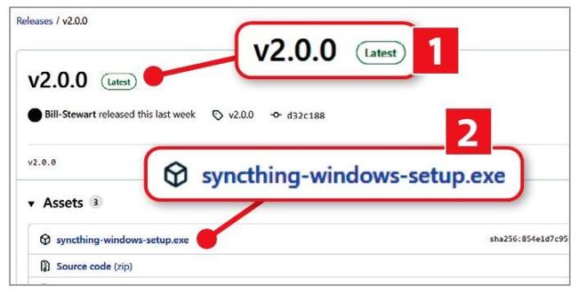 Click ‘syncthing-windows-setup.exe’ to download the Syncthing installer