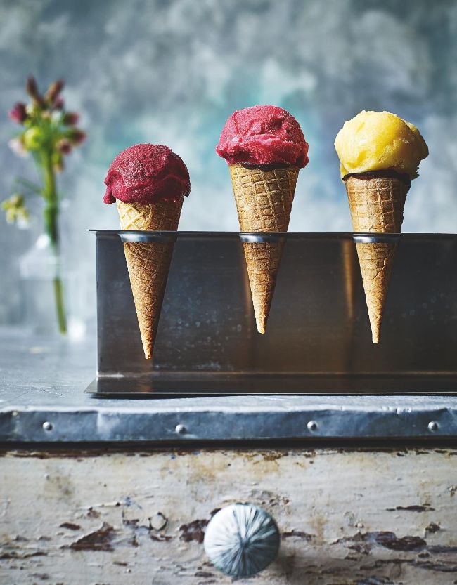 CALL THE CONE HOTLINE Blackberry, raspberry and mango sorbets, p8