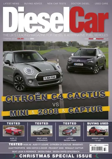 There’s also news of the facelifted Audi Q3, the first pictures of Volvo’s new V60 Cross Country and a look at Toyota’s updated Prius+. We’ve also been behind the wheel of the latest Skoda Fabia, driven the facelifted Audi A6 and put the four-wheel-drive SEAT Leon X-Perience through its paces, as well as testing Audi’s sensational new TT Coupé on UK roads for the first time. Citroën’s new C4 Cactus takes on the MINI five-door Hatch, as well as meeting its French rivals, the Peugeot 2008 and Renault Captur – which one wins. There’s also road tests of the Maserati Quattroporte Diesel and Skoda’s most frugal Rapid Spaceback, the 99g/km GreenLine edition. In our used car section this month, the Nissan Juke 1.5 dCi is the subject of our in depth used car buyer’s guide. There’s also all your favourite sections, including Doctor Diesel, The Extra Mile, Marketplace, High Mile Club and the most up-to-date data section in the business.