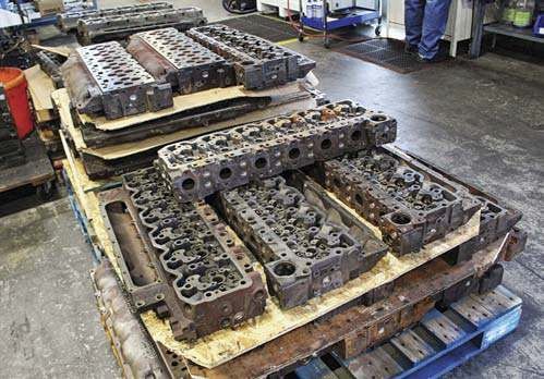 Once a core cylinder head has been stripped, cleaned, and qualified as reusable, the remanufacturing process begins. Here, three pallets of heads (approximately 30 units) are about to begin circulating around Freedom Racing Engines (the machine shop and engine building side of Fleece’s Indianapolis area operation), where they will either be transformed into a Street or Performance version of their former self.