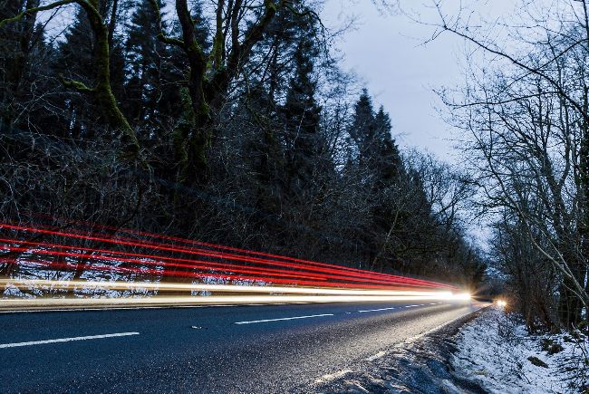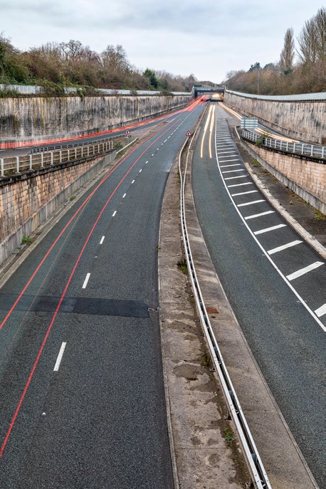 ■ For a classic take on light trail photography, head to a bridge above your nearest motorway or dual carriageway. The raised viewpoint will enable you to fill more of the frame with trails as the traffic streams from the foreground to the vanishing point. It also means you’ll be able to capture the white lines of oncoming headlights and red streaks from rear lights in the same frame, creating a pleasing visual balance.