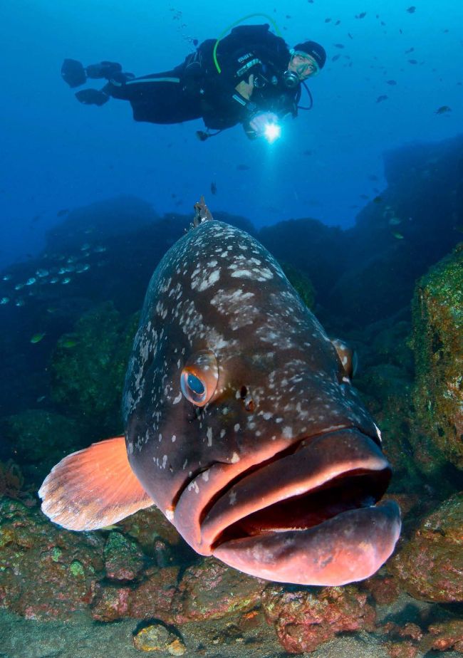 CAP GARAJAU DESERVES stalker warning signs. The first of several Methuselah grouper swims straight up to the divers in the shallows, only to take its fin off the accelerator at the very last second.