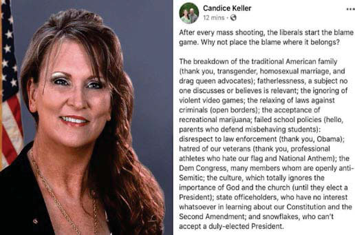Ohio politician, Candice Keller based her bid for a state senate seat on the claim that gays, trans people, “drag queen advocates” and former-President Barack Obama are responsible for America’s mass shootings.