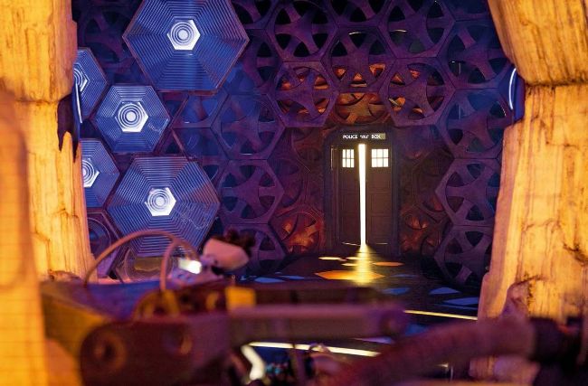 Setting foot in the TARDIS control room was quite overwhelming, even though I was initially bemused to find a number of custard creams on the floor by the console. Gazing at the elaborate walls it was difficult to imagine how this strange new place would appear on screen once the ethereal lighting was applied.