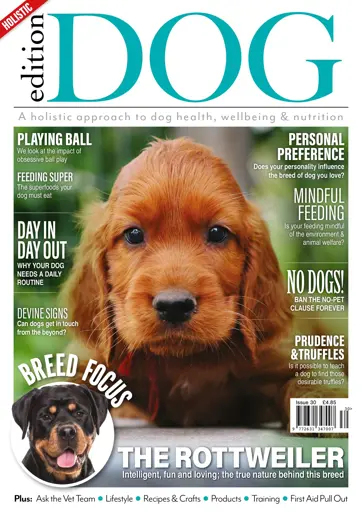Inside this issue we take a closer look at the superfoods your dog needs to eat, explore the growing interest in studying our dog’s walking behaviour, look at how we can ensure our raw feeding is mindful of the environment and animal welfare, find out if Anna Webb’s dog Prudence manages to sniff out truffles, explain the role personality plays in the breed of dog you love, Lee Connor shares his experience of trying to find a rental with his dogs and we ask is ball play beneficial for our dogs’ welfare?