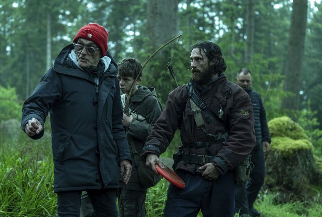 Director Danny Boyle with Aaron Taylor-Johnson and Alfie Williams;