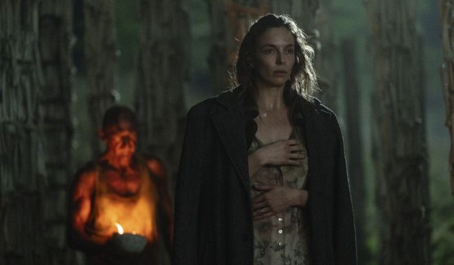 Mum Isla (Jodie Comer) with Dr Kelson (Ralph Fiennes);
