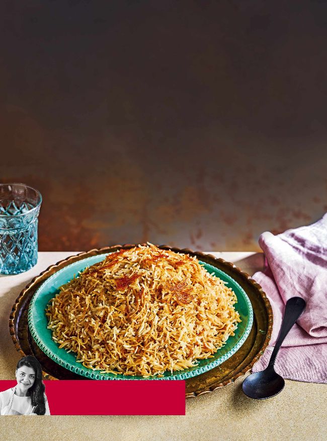 2 Once the vermicelli is browned (not just golden) add the rice, a pinch of salt and pepper, and mix well until evenly combined. Pour over 800ml cold water, cover with a lid and cook on a medium heat (or low if using gas) for 30 mins, until the rice on top is cooked. Fluff up with a fork. Serve on a platter with the crust that forms on the bottom of the pan on top of the rice (this is called “tahdig ”).