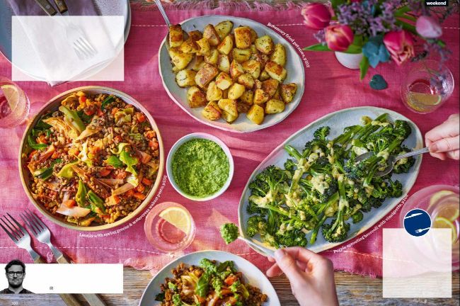 Weekends are packed f ull of cooking with my son Wilf red. He loves to cook, and as we’re both up first, we set about preparing the weekend meals for ever yone else. Often, we make cheese, breads, pizzas and lots of veg-centric food. My wife Olia ( her cover recipe can be found on p12) and any guests dropping by will tuck in to what we’ve come up with. Taking the time to sit down and eat together is so important – catching up, sharing stories and making each other laugh. These recipes don’t require much time at the stove, and they can be served sharingst yle for ever yone to help themselves, maximising the time spent with family and friends at the table.
