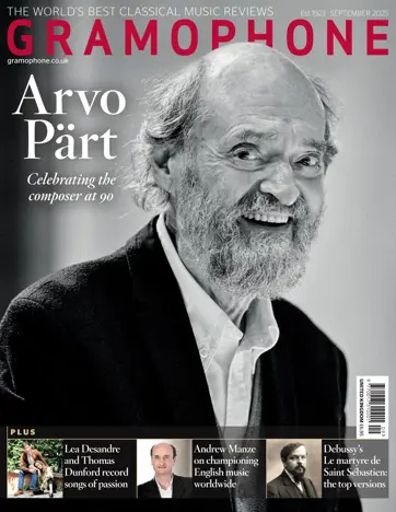 The September issue of Gramophone celebrates the 90 birthday of Estonian composer Arvo Pärt, with a cover feature examining how the worlds of music and geopolitics continue to respond to this pivotal figure and his spiritual works – and the issue’s My Music interview is a very special one with the President of Estonia, Alar Karis. Elsewhere in the magazine, soprano Lea Desandre and lutenist Thomas Dunford talk about their new album ‘Songs of Passion’, pairing Dowland and Purcell, while conductor Andrew Manze tells us about his new recording with the Royal Liverpool Philharmonic Orchestra of English orchestral music. This month’s Icons introduces the artistry of Edith Farnadi, a Hungarian pianist with a flair for Liszt and Bartók, while Classics Reconsidered returns to the first recording of Poulenc’s opera Dialogues des Carmélites, conducted by Pierre Dervaux in 1958. The September issue’s Collection explores the recorded catalogue of Debussy’s Le Martyre de saint Sébastien, and recommends the leading versions. This month’s Contemporary Composer is Ian Venables, best known for his songs and chamber music, while Musician & the Score meets harpsichordist Mahan Esfahani to discuss Book 1 of Bach’s Well-Tempered Clavier. Plus, as always, the latest classical music albums are reviewed by our world-leading experts, with the best named Editor’s Choices.