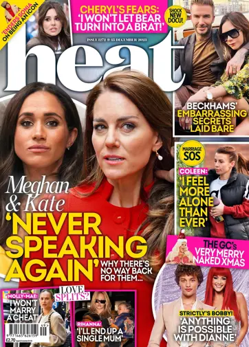 1272 Heat Magazine's latest issue delves into Cheryl's fears of her child turning into a brat, while exposing Beckham's embarrassing secrets. With Coleen's shocking new documentary and Molly-Mae's refusal to marry a cheat, love splits are explored. Plus, Meghan and Kate's marriage SOS, Rihanna's fear of being a single mum, and the scandalous GCS's very merry naked Xmas.