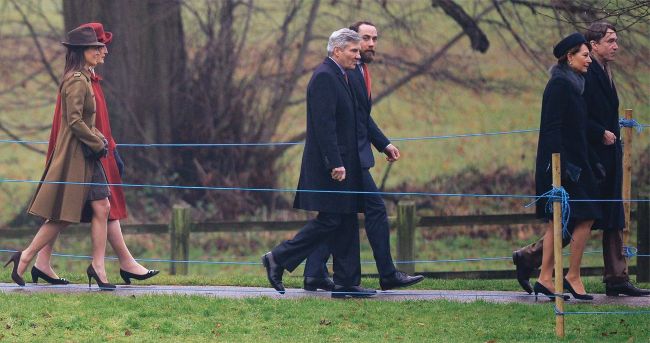 sister Pippa Middleton – who walked into church with Lady Susan Hussey – dad Michael, brother James and mum Carole, who is accompanied by the Marquess of Cholmondeley