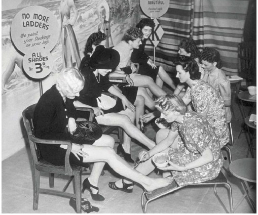 Rationing hit wartime Britain hard, on the dinner table and the wardrobe. Women had to sacrifice their nylon stockings, which had only been introduced in 1939, as the material could be put to better use making parachutes, cords and rope.